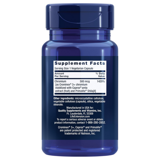 Life Extension Optimized Chromium with Crominex 3+ 500 mcg, metabolism health, healthy balance, Vegetarian, Gluten Free, Non-GMO, 500 mcg, 60 vegetarian capsules
