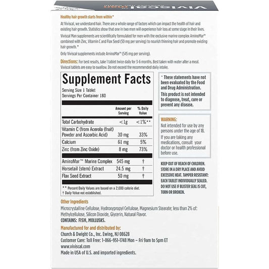 Viviscal Man Hair Growth Supplements For Men | Effective Hair Loss Solutions for Men - 180 Tabs (3 month Supply)