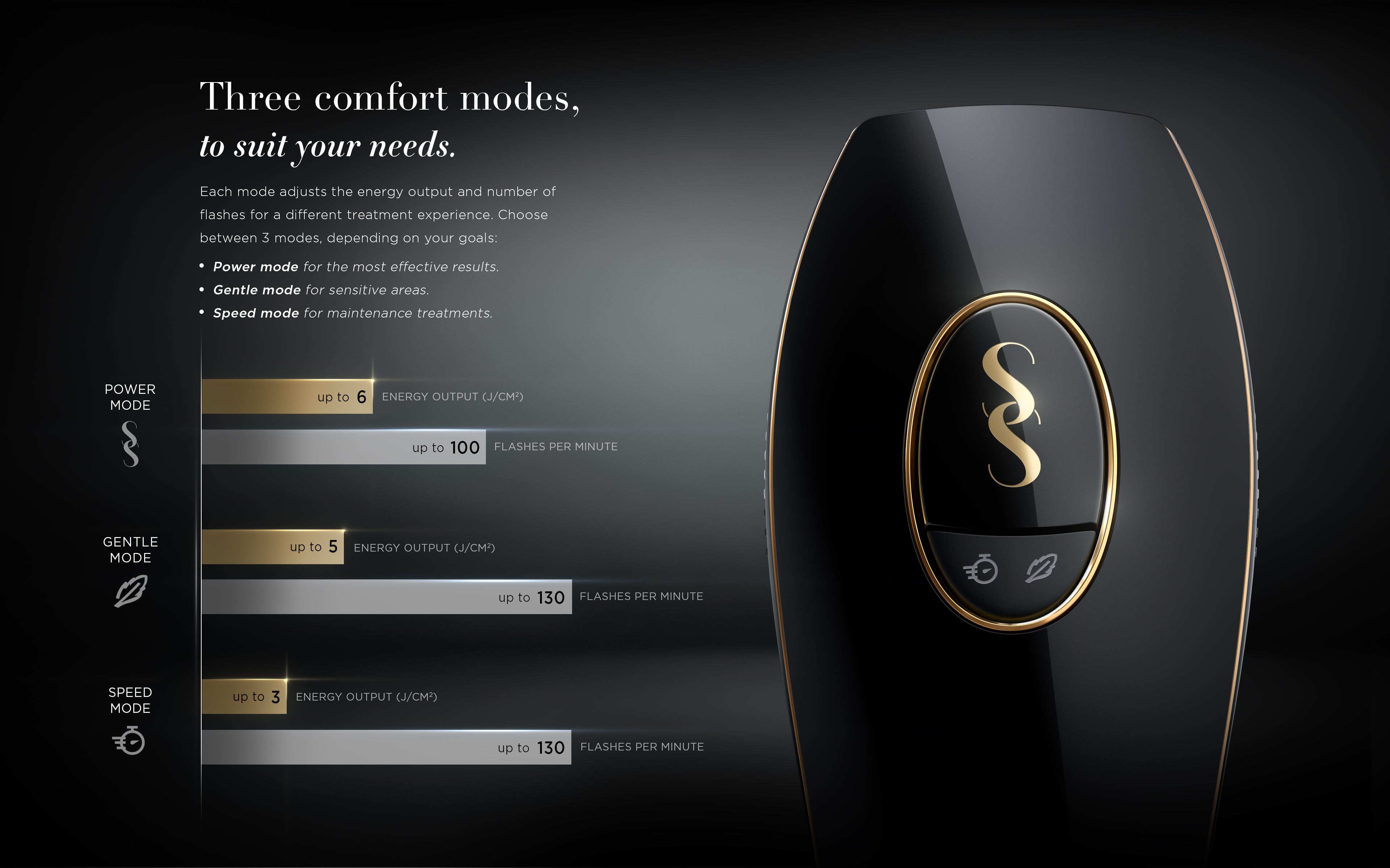 - Enjoy three comfort modes - Power, Speed, and Gentle - making it suitable for all your hair removal needs. With precision head attachment for targeting small areas. Plus, with unlimited flashes, you'll never run out.