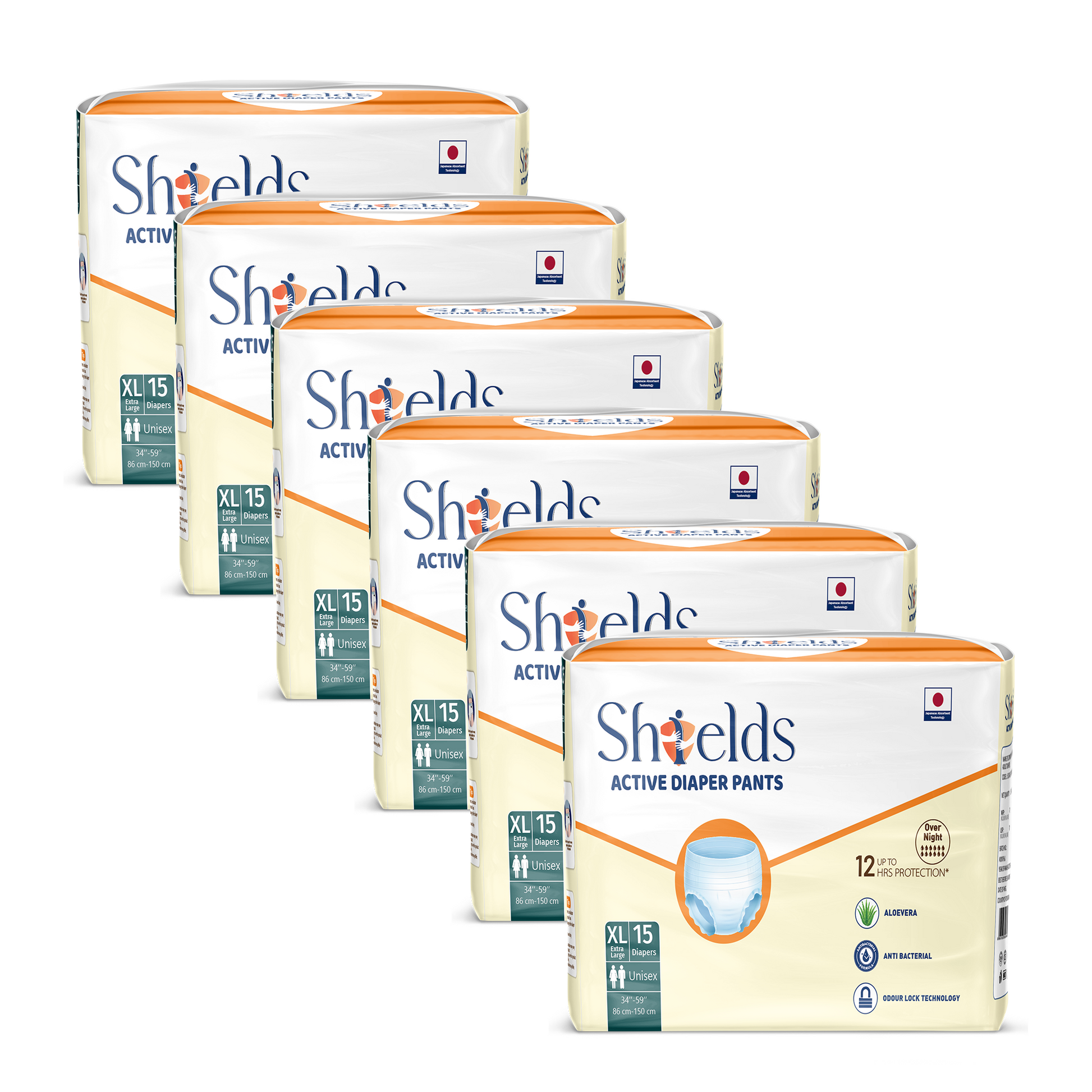 Shields Adult Diapers, Unisex Incontinence Diaper Pull-Ups for Women & Men, Leak-Proof, Daily Bladder Protection - Pack of 6 (XL)