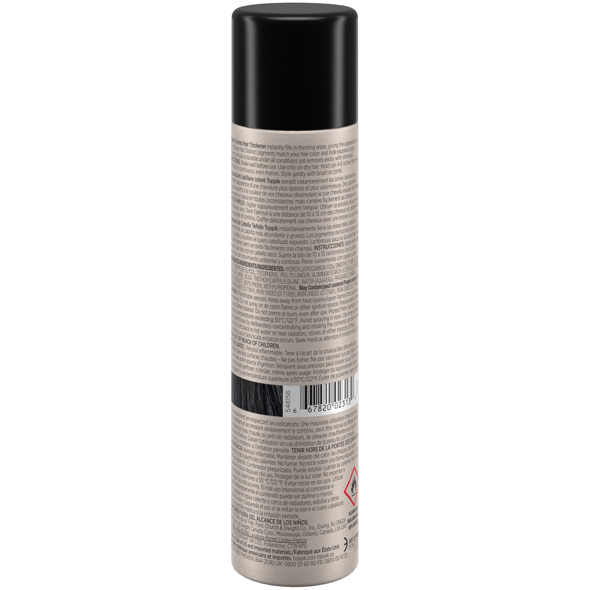 Toppik Colored Hair Thickener is an innovative color spray solution designed to disguise areas of thin or thinning hair, scalp show-through, bald spots and root re-growth between color appointments.